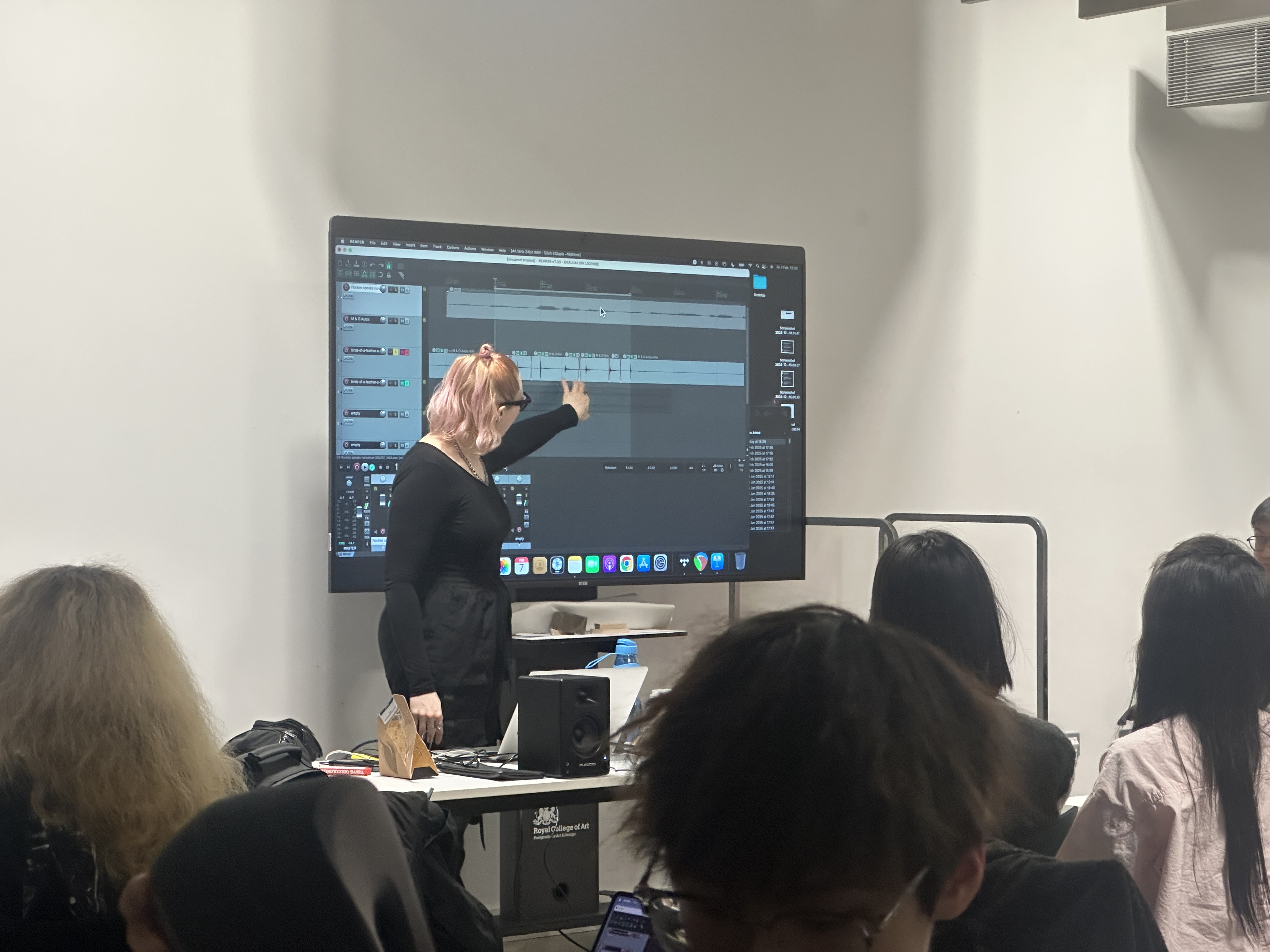 In 2025 students are working with sound, noise, field recordings and the sonic to explore the layers of emotion, feeling, and affect within, across and beyond spaces. To ground the work, students were introduced to Sadler’s Wells East in the Olympic Park, London, and connect a space within or beyond its boundaries to consider labour, pleasure, performance, and urban change.